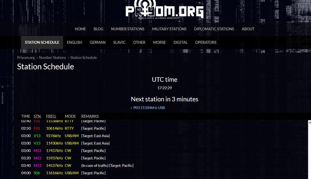 Of all the online resources, PriYom is one of the more comprehensive, guaranteed to keep you busy. It turns out that there are now RTTY numbers-stations, as well as a host of otherwise unknown modes.