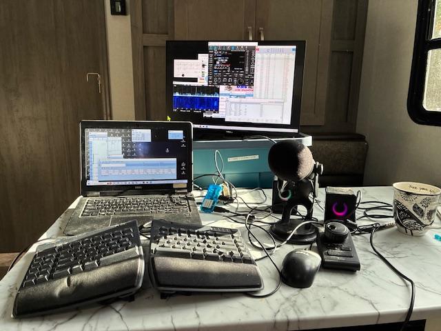 Fred (VE7IO) gave a presentation on remote access to his home station. His talk involved a live demonstration of accessing his station from the lounge. He is able to access his various radios and control them from his remote computer.