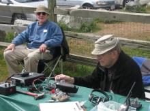 The morning of May 4th was cool and overcast but it was dry so by 11AM several members were already down at the Spit setting up for the practice. Soon we had most of the club in attendance and were busy stretching out cables and assembling verticals, much to a amusement of the few on-lookers. A few visitors did stop by for a few questions but for the most part they ignored us. We will need to add a table with some welcoming signs for the field day event so that people feel more at ease at coming over and seeing what we are doing.