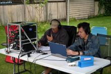 Field Day this year was very different from its predecessors, Covid-19 demanded that groups not happen and so most clubs opted to operate in a dispersed fashion with the members operating out of their homes. Our club being quite small decided to gather in the traditional way but rather than find a public location we operated out of a private yard. Club member Eric has a large yard area with surrounding trees that was ideal for a small field set up. So, we decided to set up at his home and operate for a few hours.
