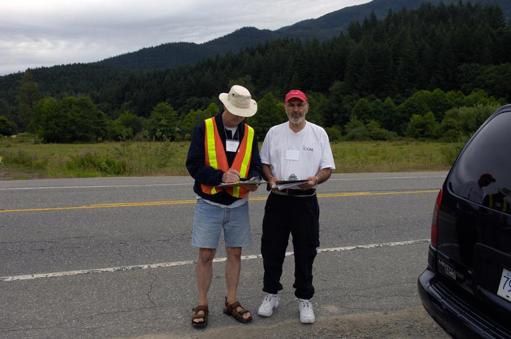 The course starts at 6AM at Brentwood Mall on the west side of Burnaby and follows Loughheed highway (#7) up to the Harrison road where it continues to the Harrison Hot Springs Resort, 125km in length! Positioned along the course were the 12 radio amateurs who provide all the communication for the event. Ralph & I participated from the club and we worked together at the western foot of Woodward Mountain. Our role was to call for assistance should any of the cyclists need help getting up the mountain.